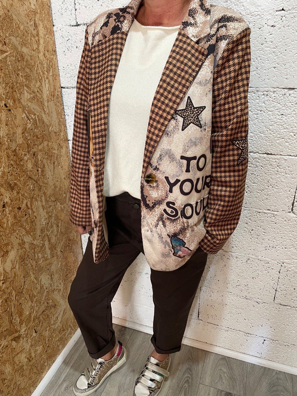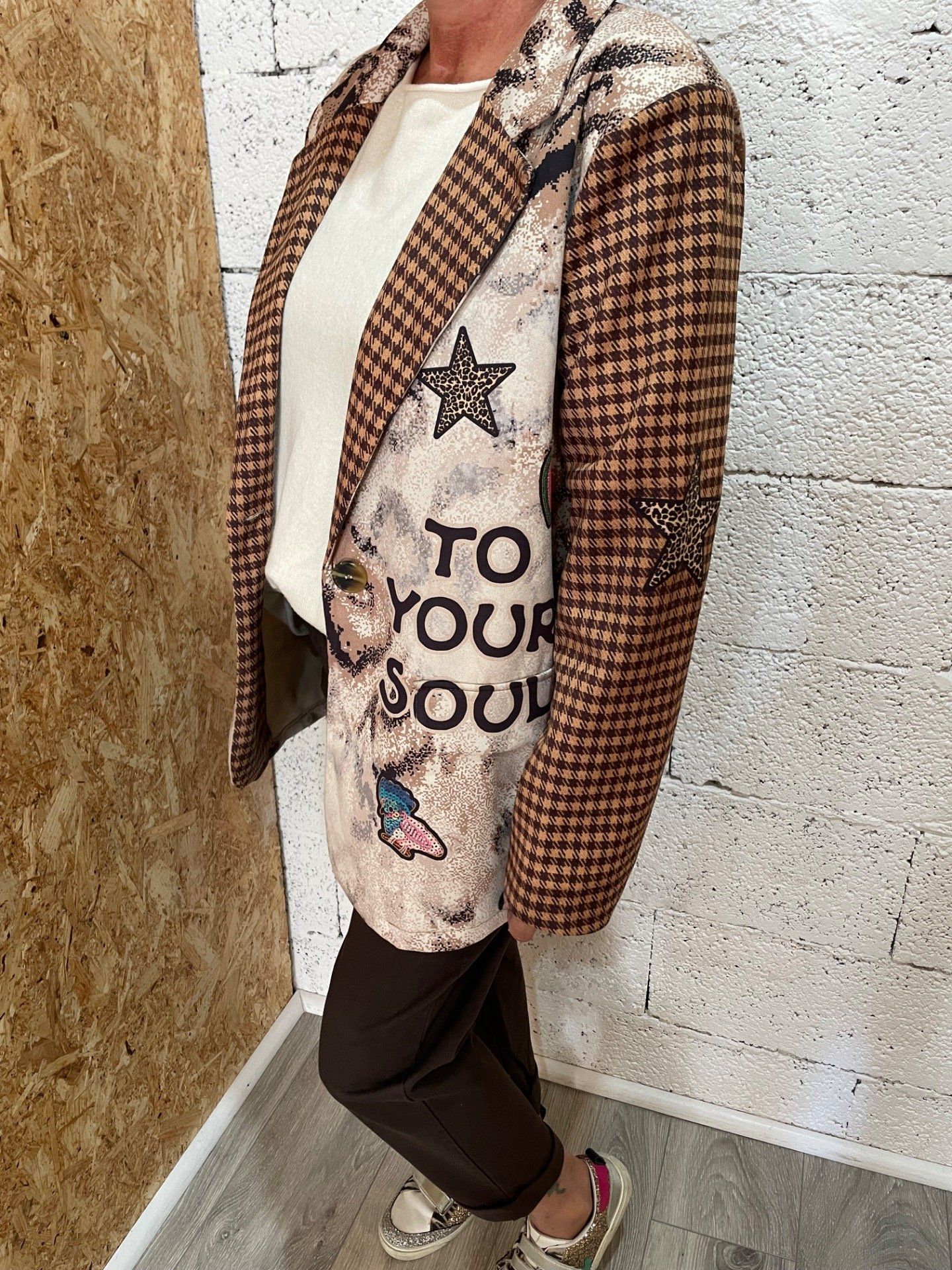 Blazer élégant imprimé daim , idéal pour l’automne.