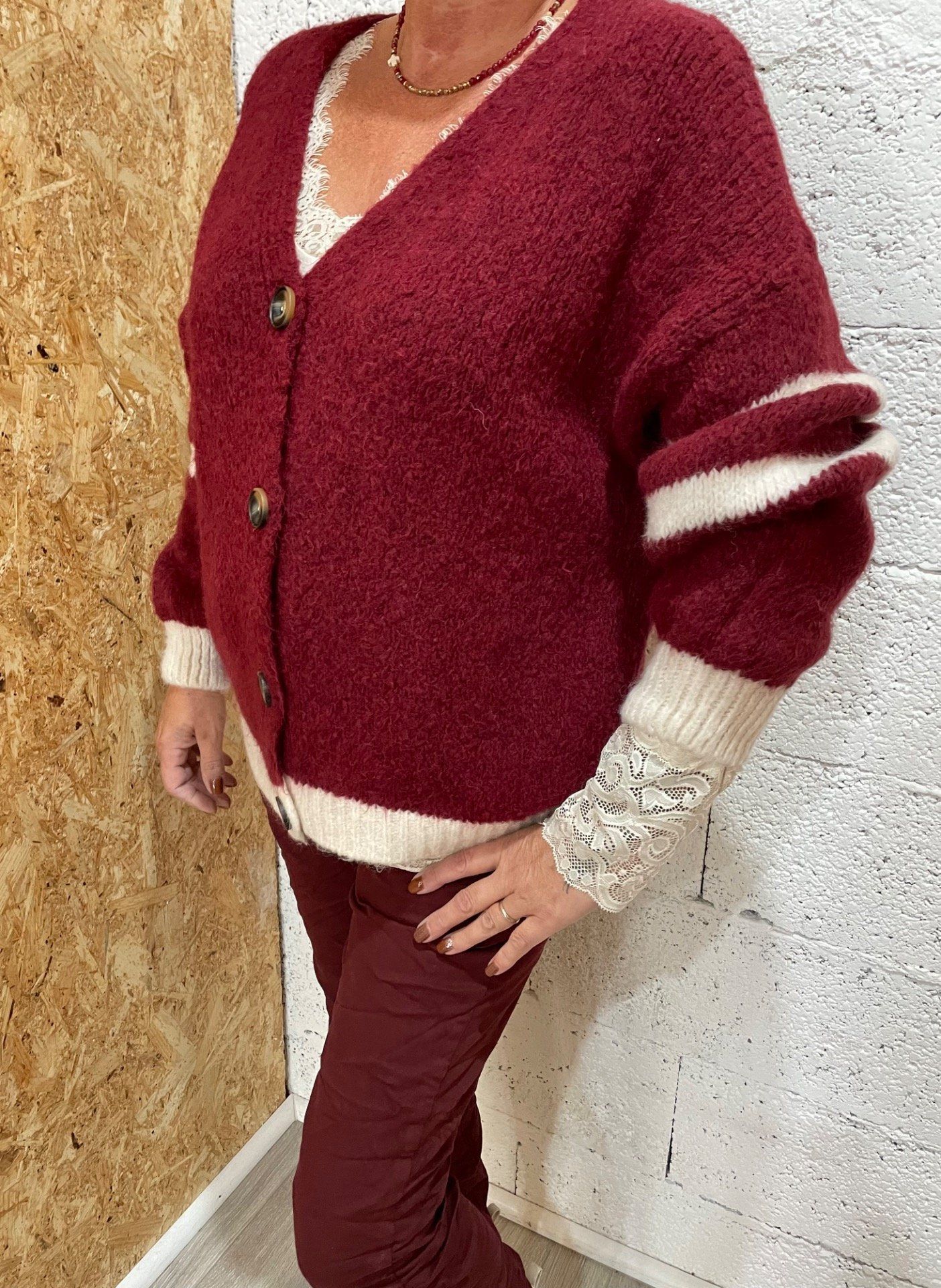 Cardigan fermeture boutons , coupe oversize , maille moelleuse.