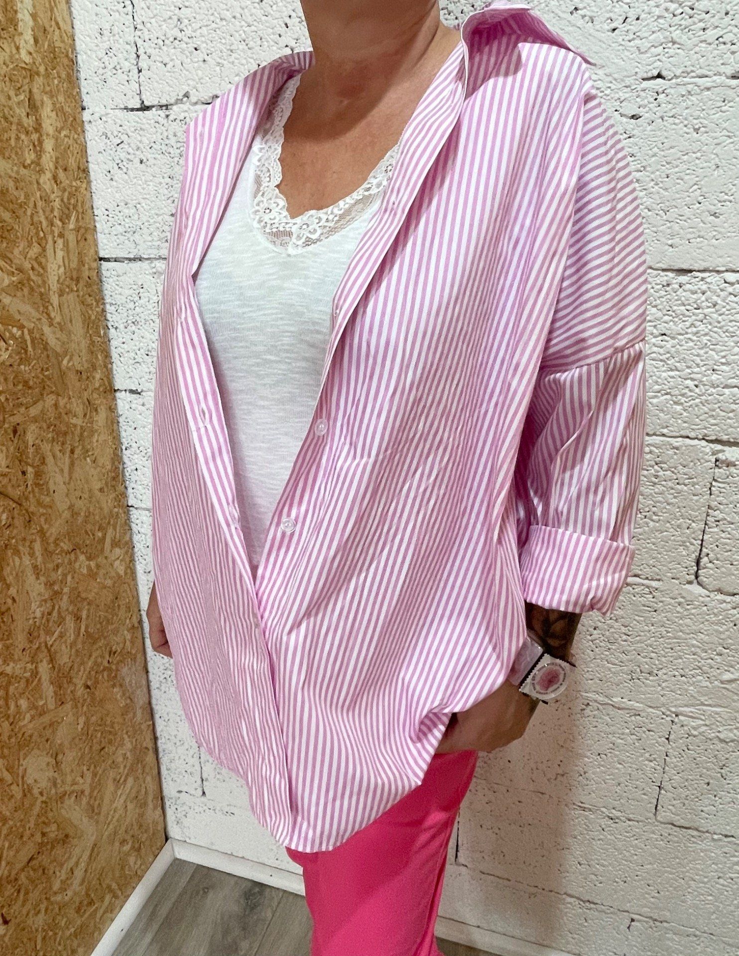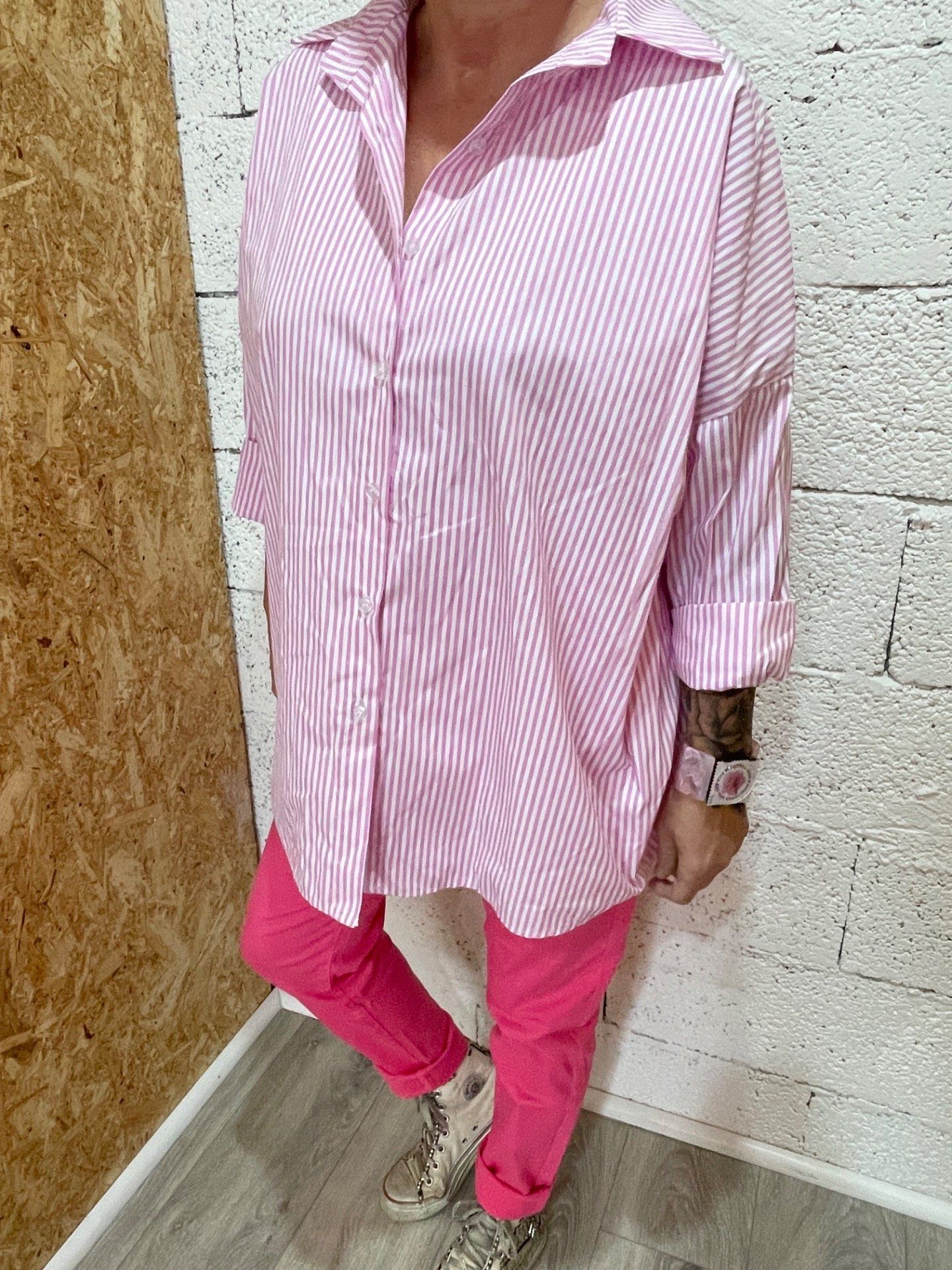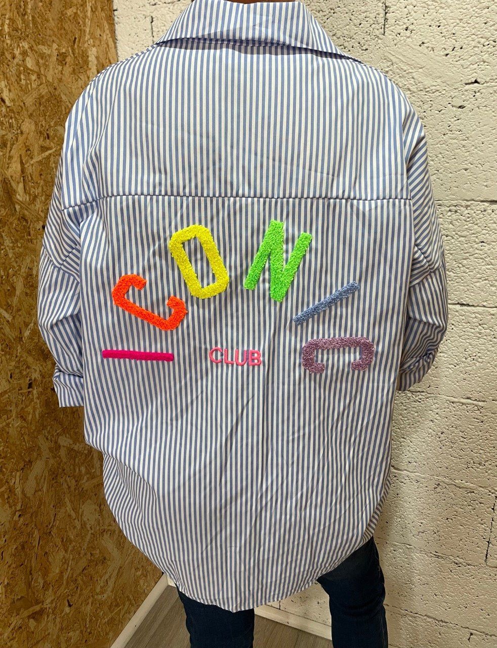 Chemise oversize rayée avec broderie dans le dos.