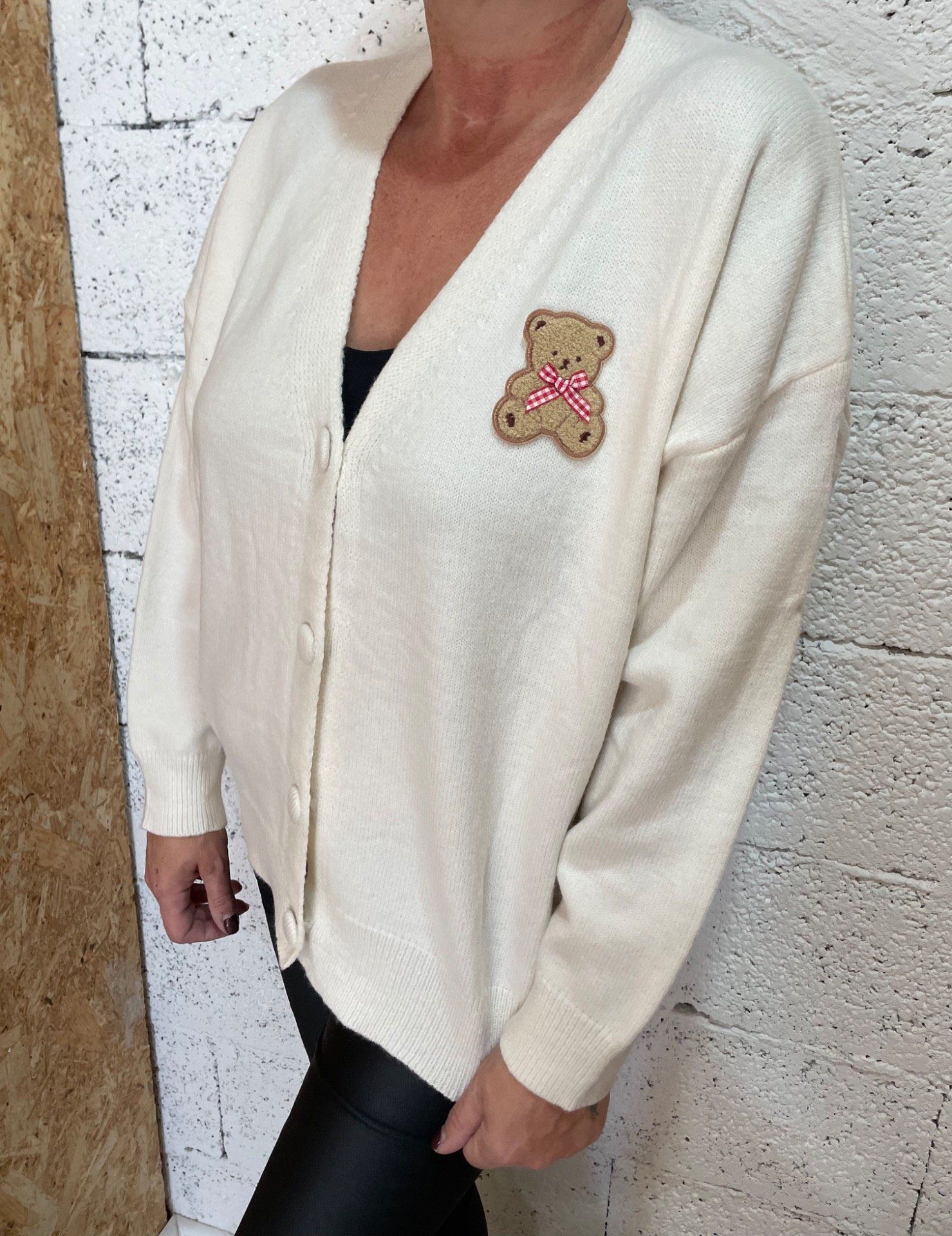 Gilet tout doux, fermeture boutons , nounours sur la poitrine.