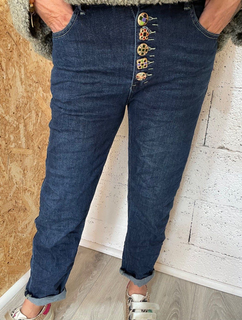 Jean fermeture boutons bijoux.