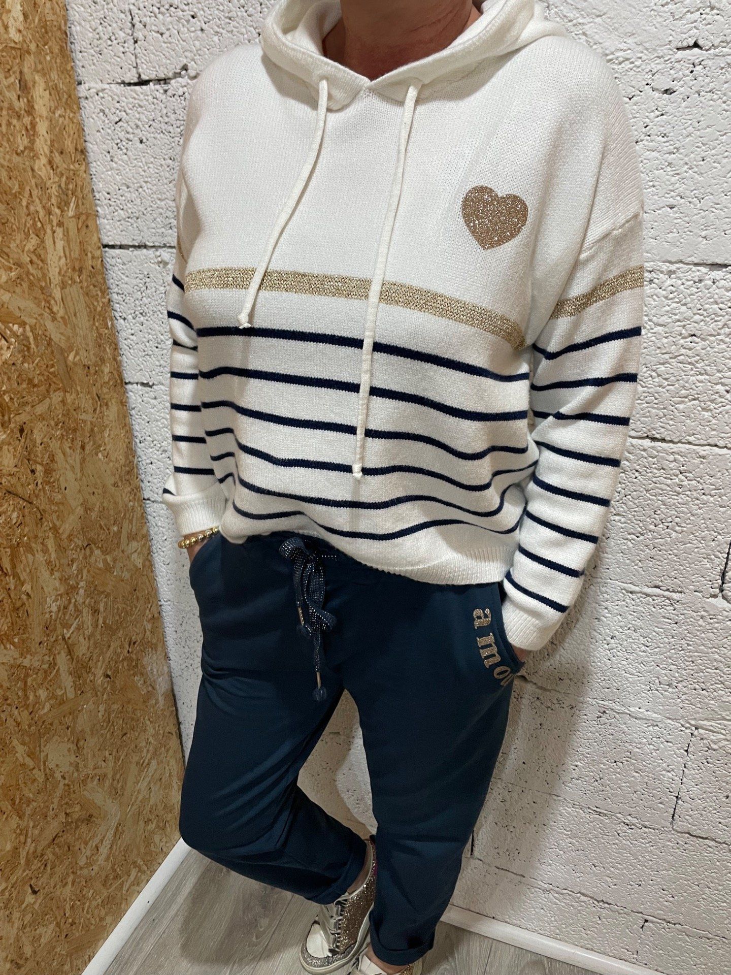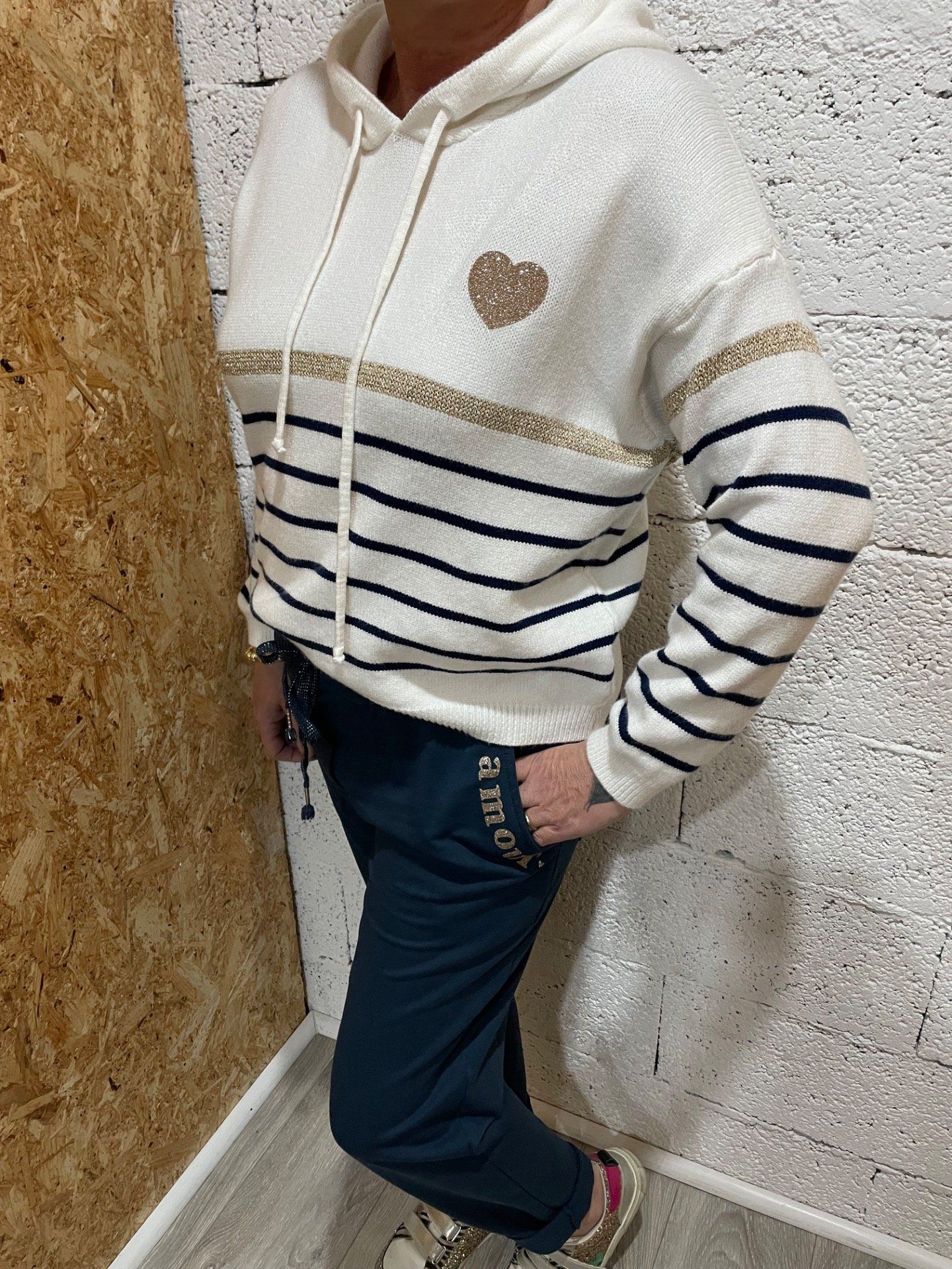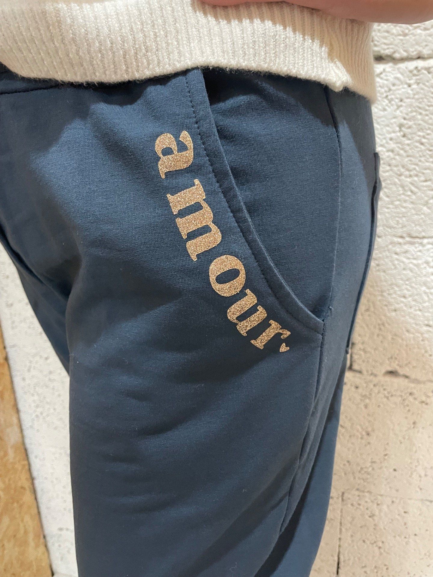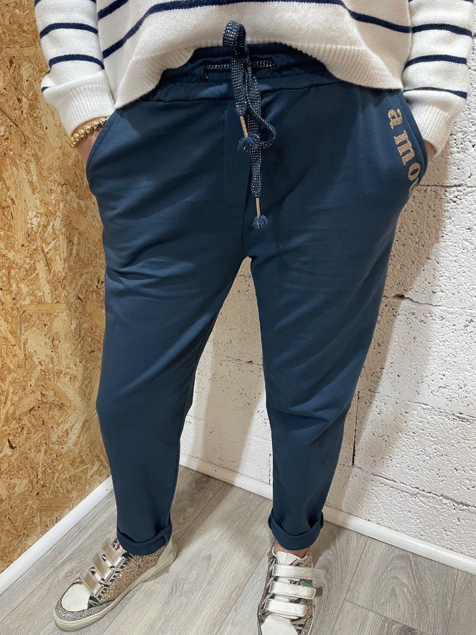 Jogg taille élastique avec cordon , inscription amour brodé sur la poche.