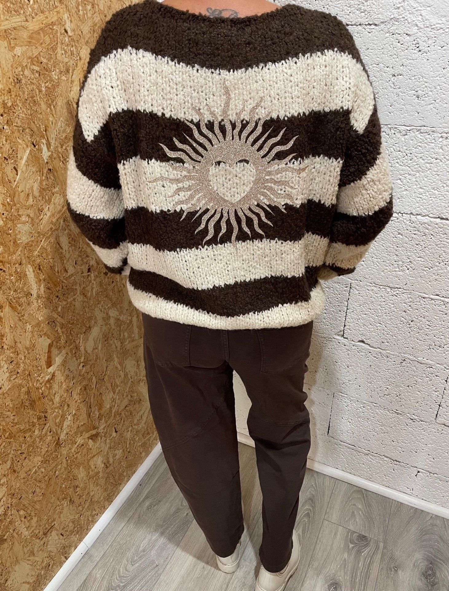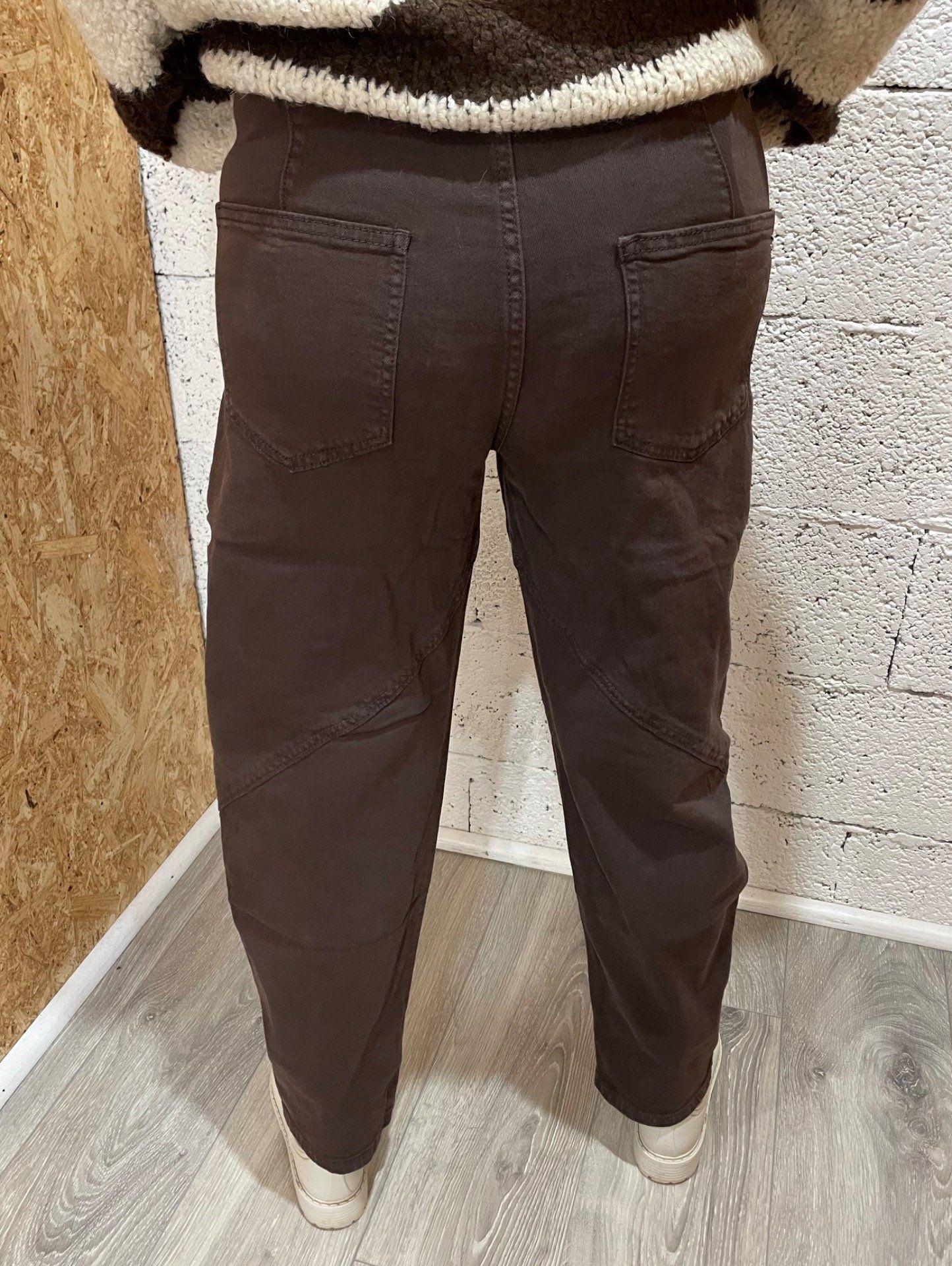 Pantalon coupe ballon , taille haute, grandes poches devant , fermeture bouton et zip .
