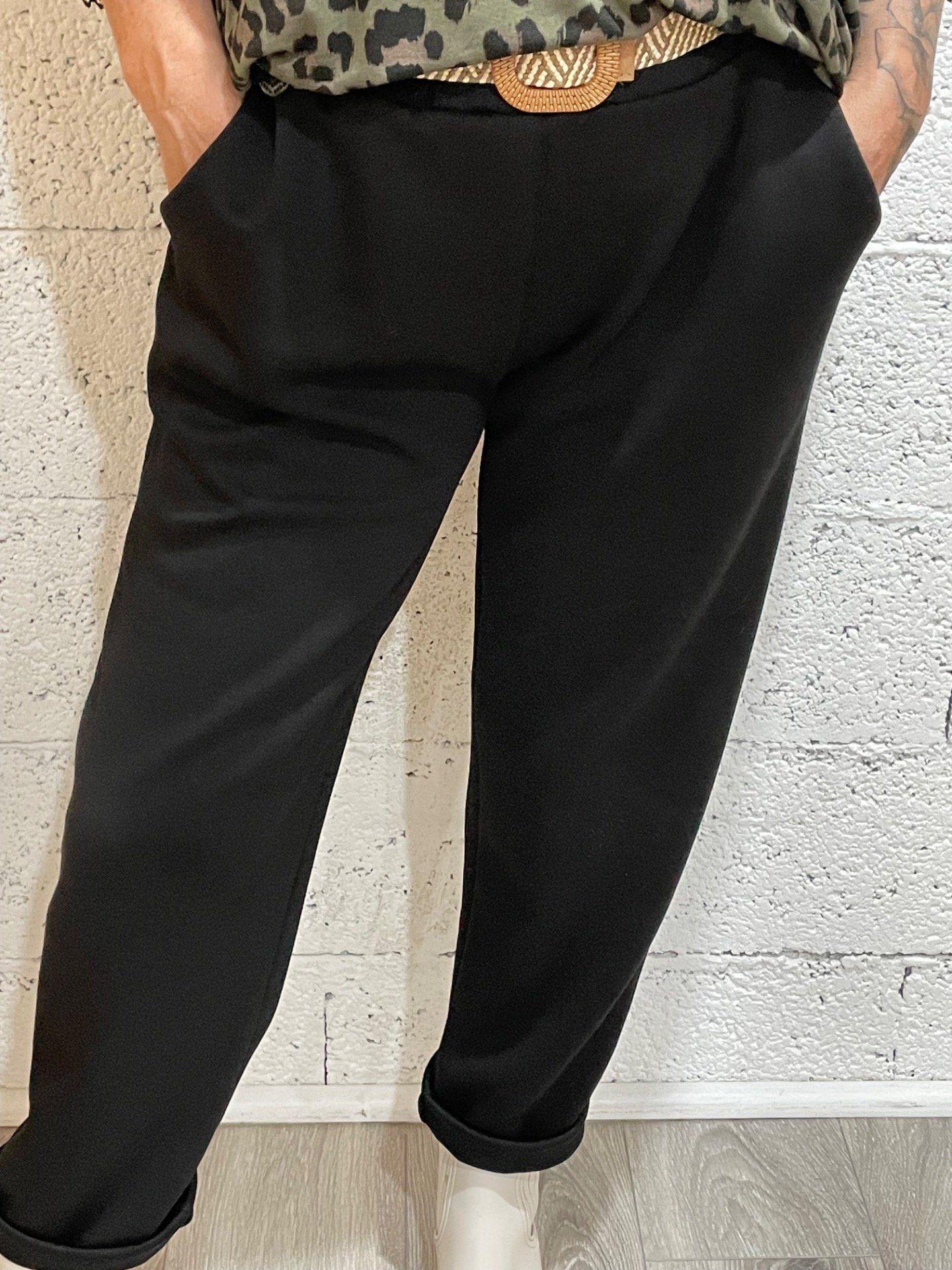 Pantalon taille élastique avec ceinture tressée , deux poches côté.