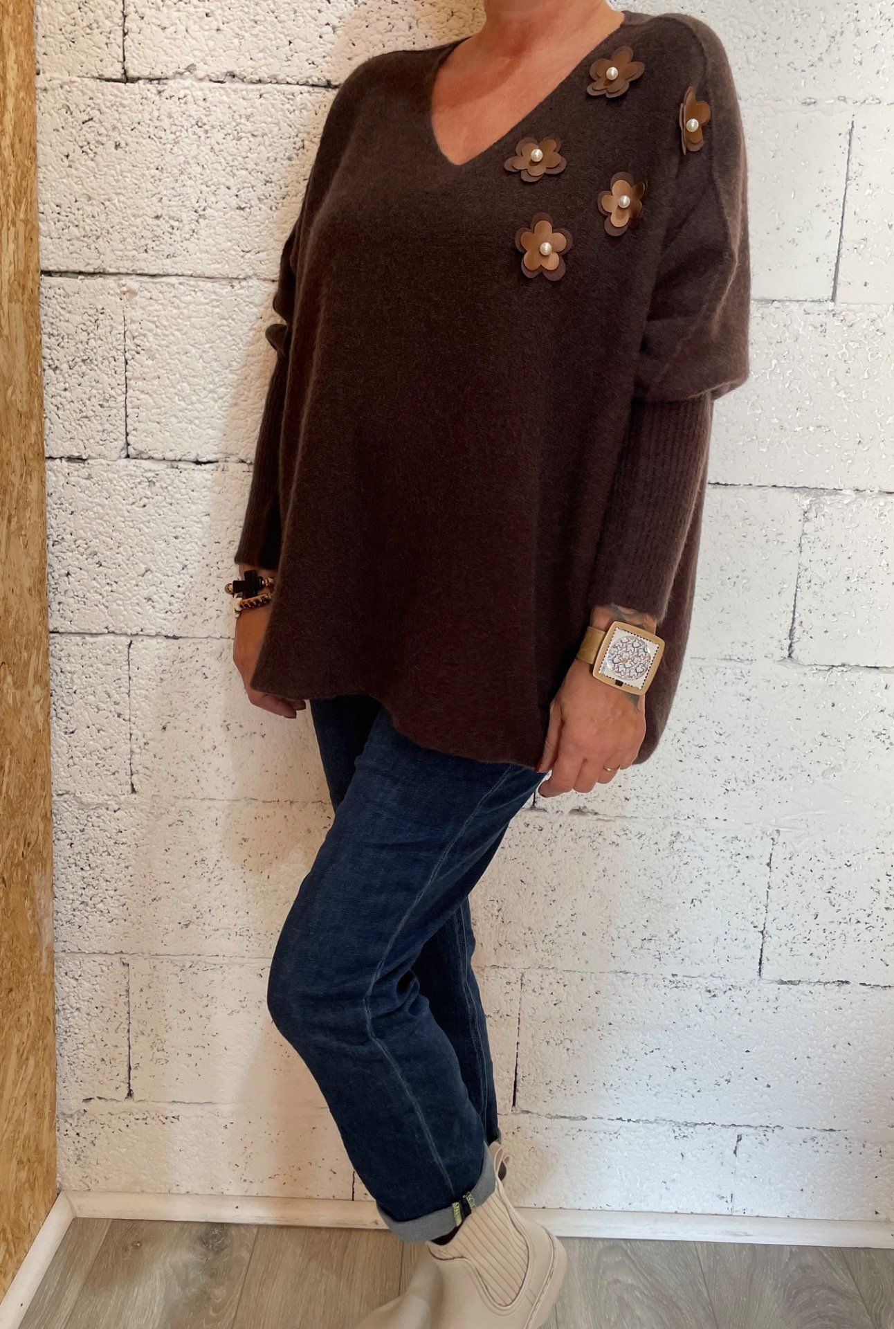 Pull confortable et chaud, orné de délicates fleurs en relief, ça coupe, amp et fluide, convient parfaitement à toutes les morphologies.