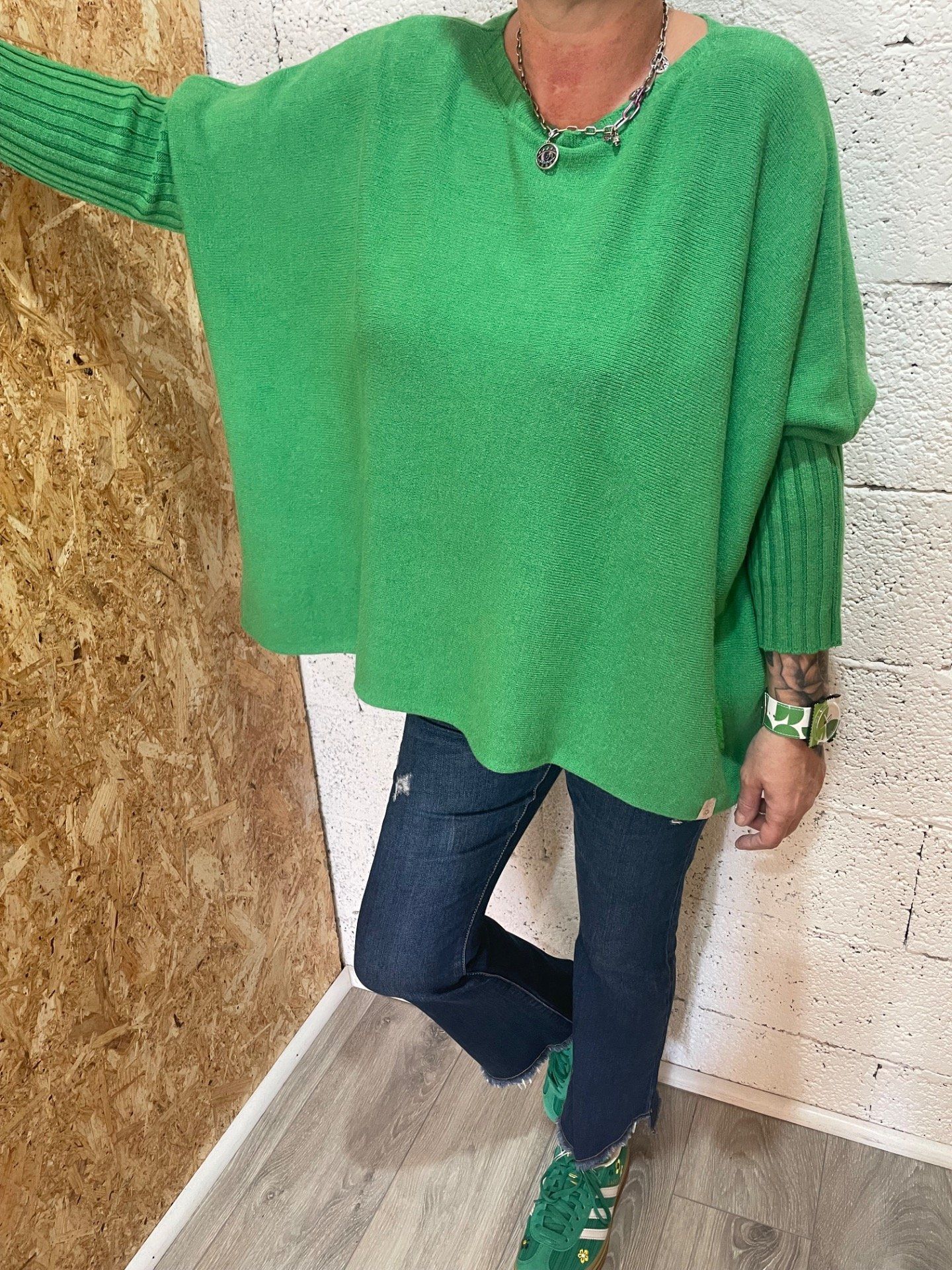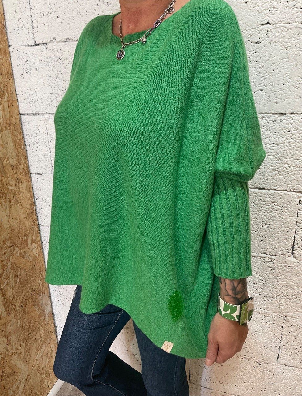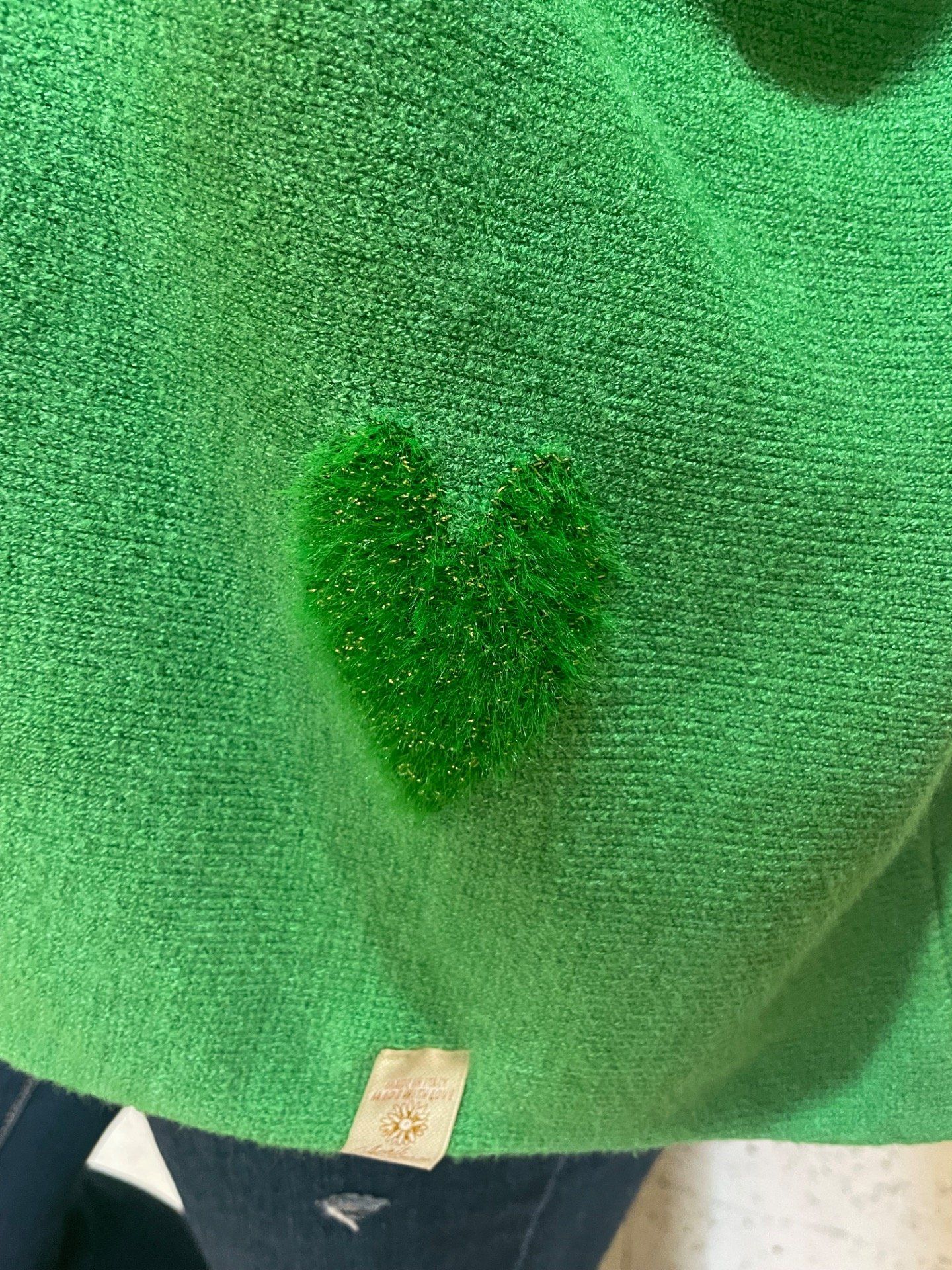 Pull uni coupé fluide , col rond et manches finement travaillées , petit détail cœur ton-sur-ton .