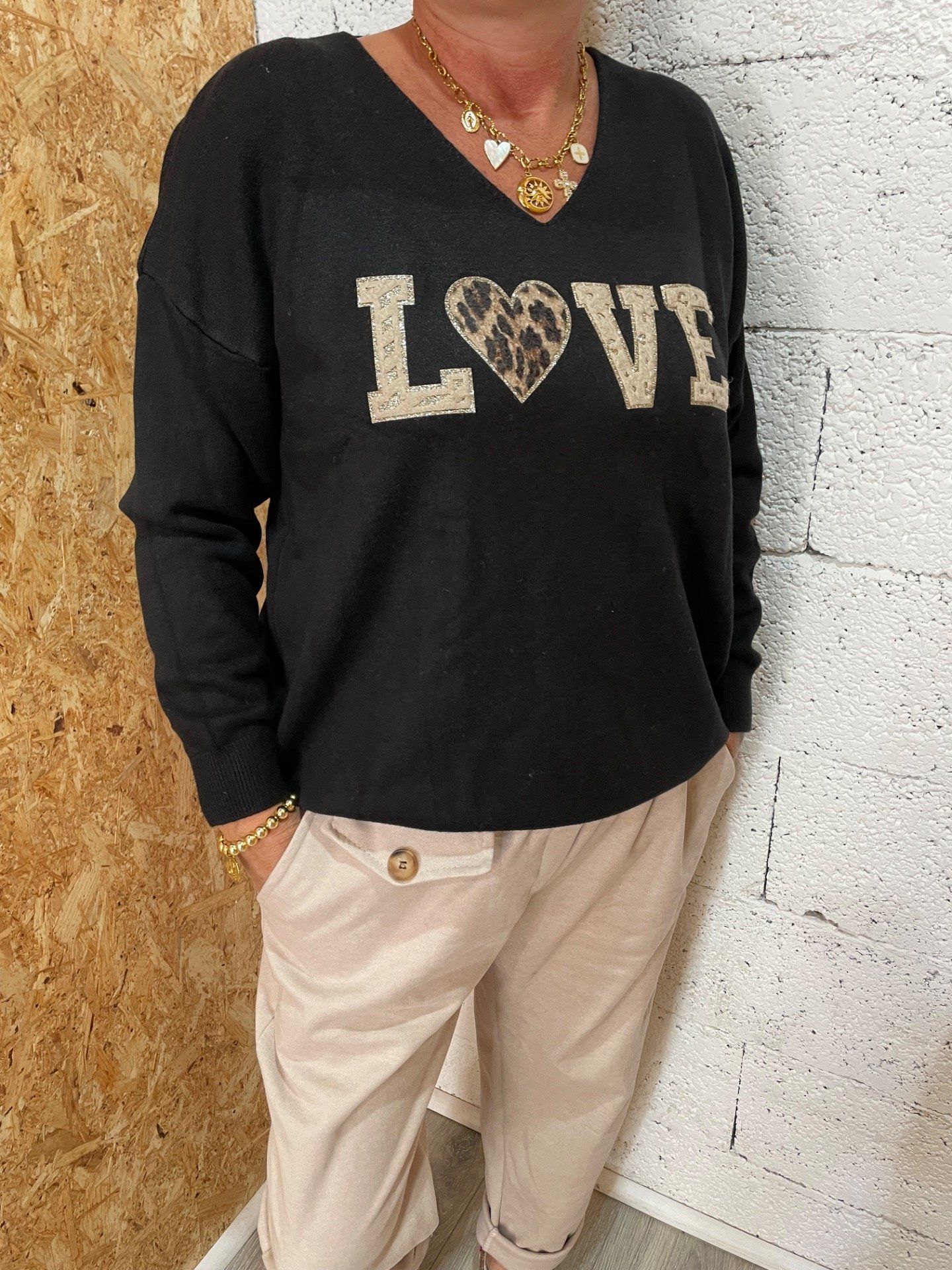 Pull doux col en V , inscription devant, taille unique du 36 au 44.