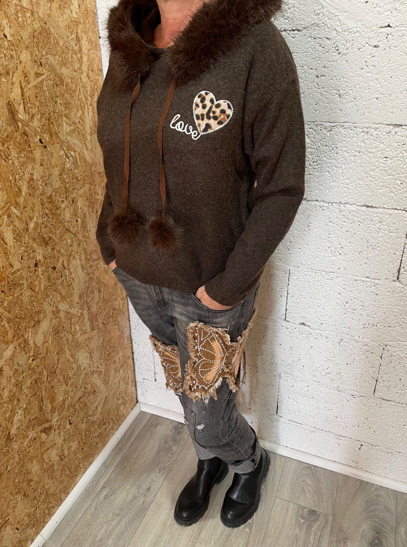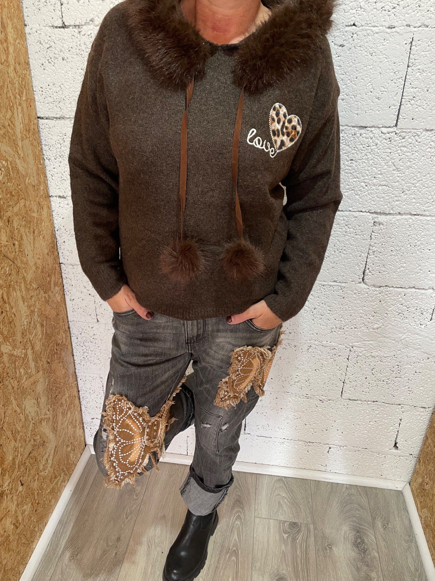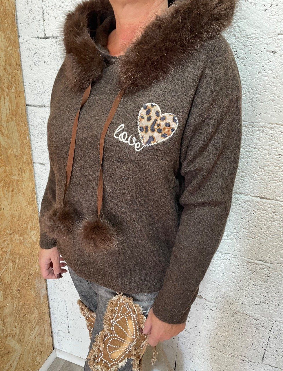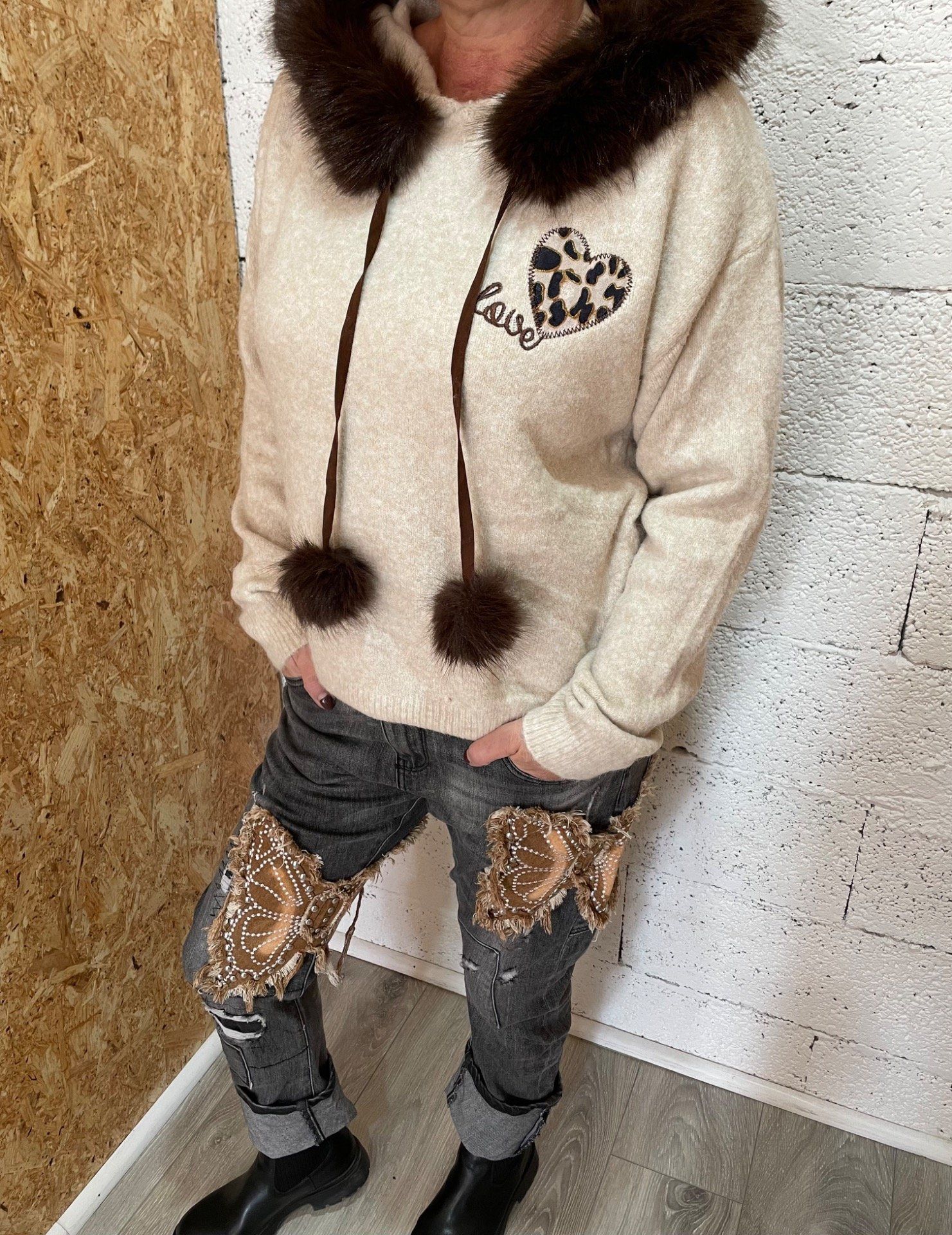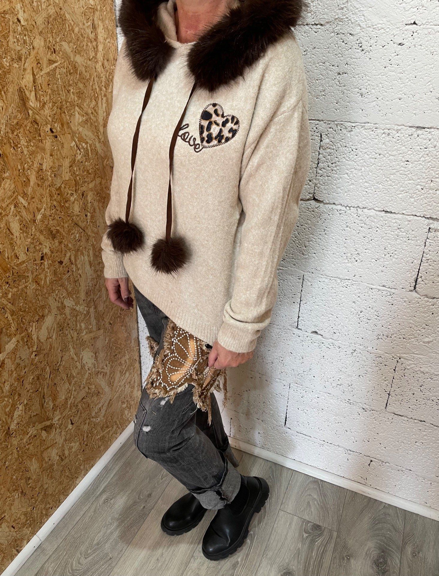 Pull tout doux avec capuche et fourrure, taille unique du 36 au 44 .