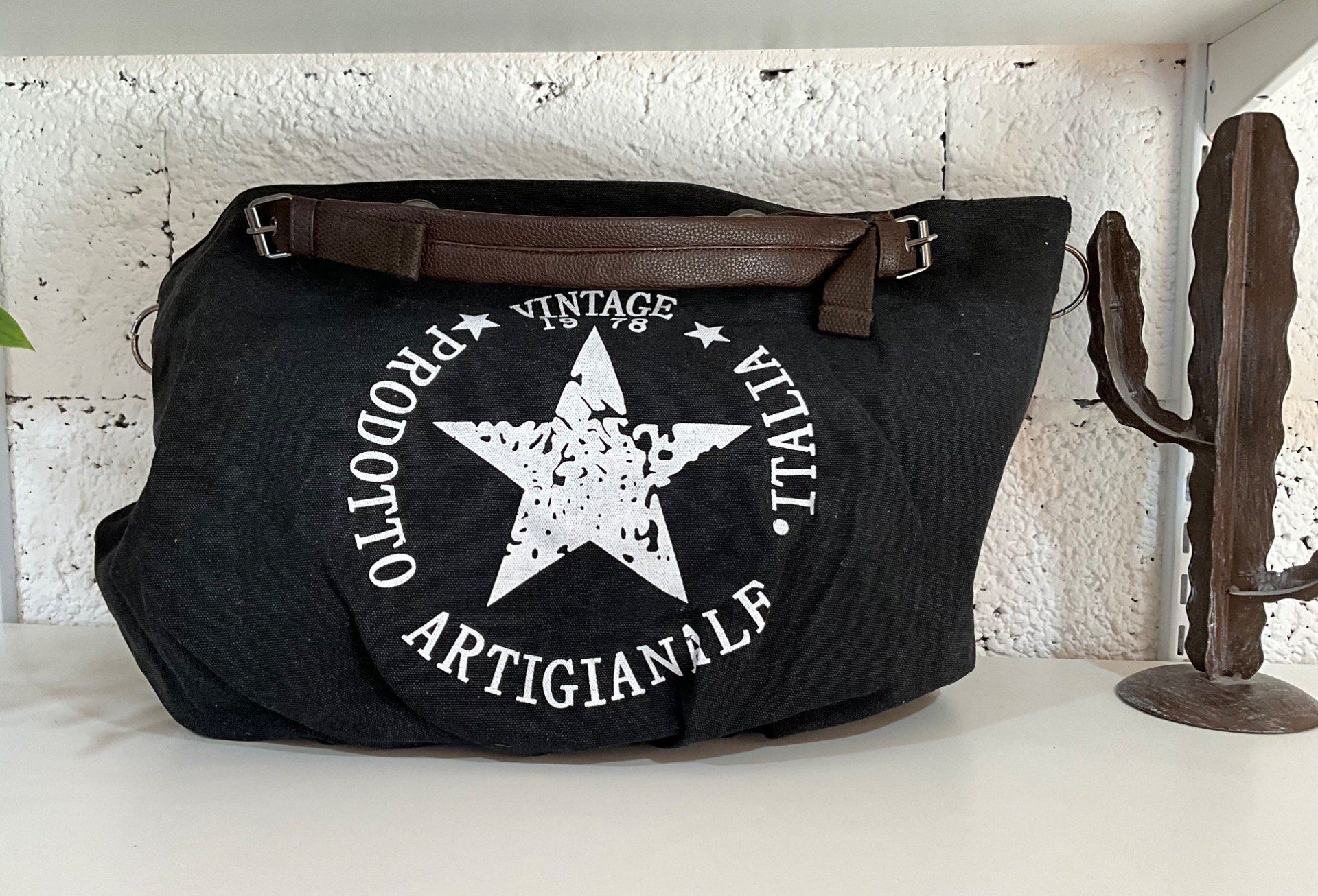 Sac à main cabas , fermeture zip , deux anses en simili cuir , intérieur tissu avec poches .