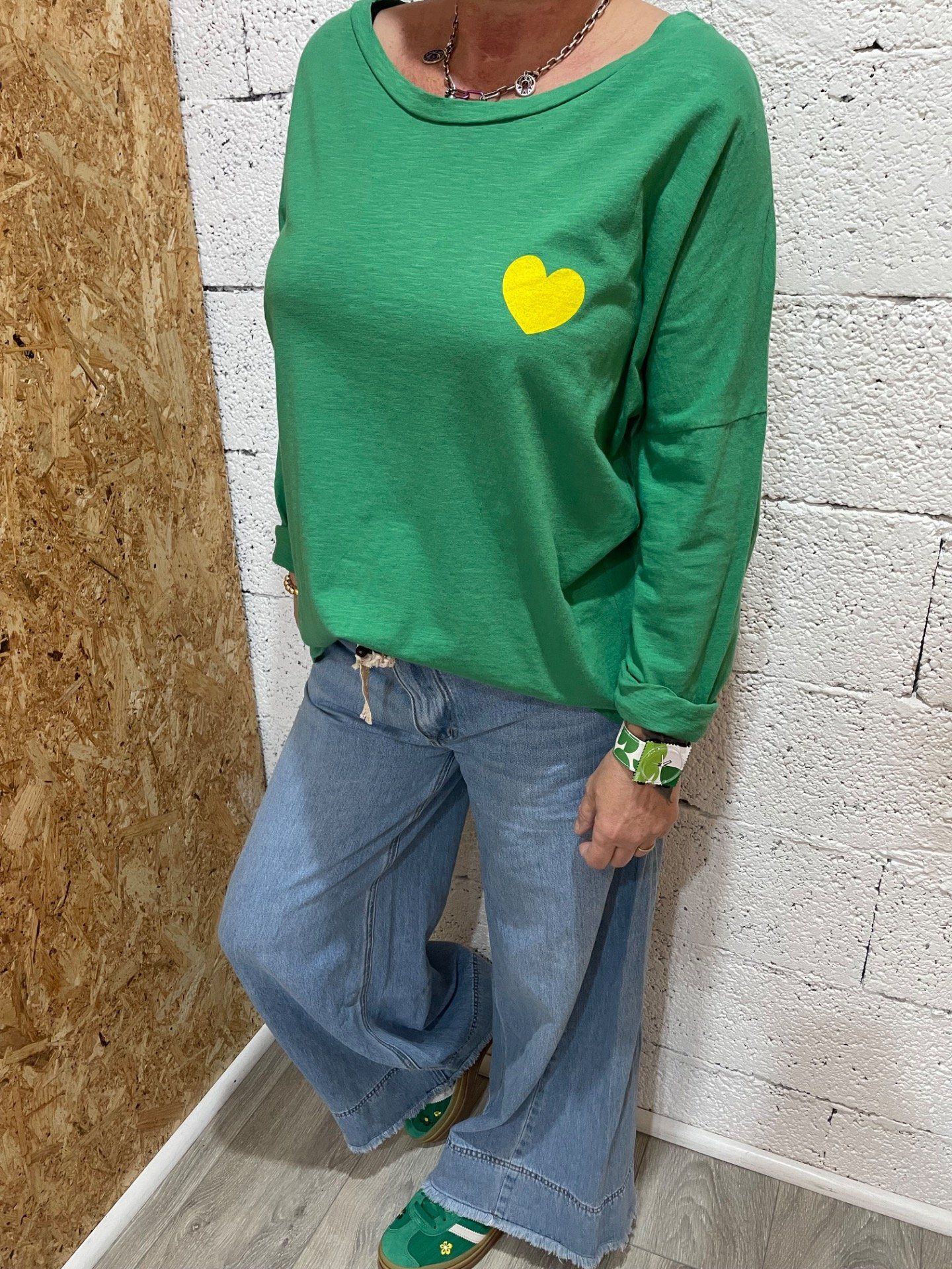 T-shirt manches longues , col arrondi , inscription devant et derrière.