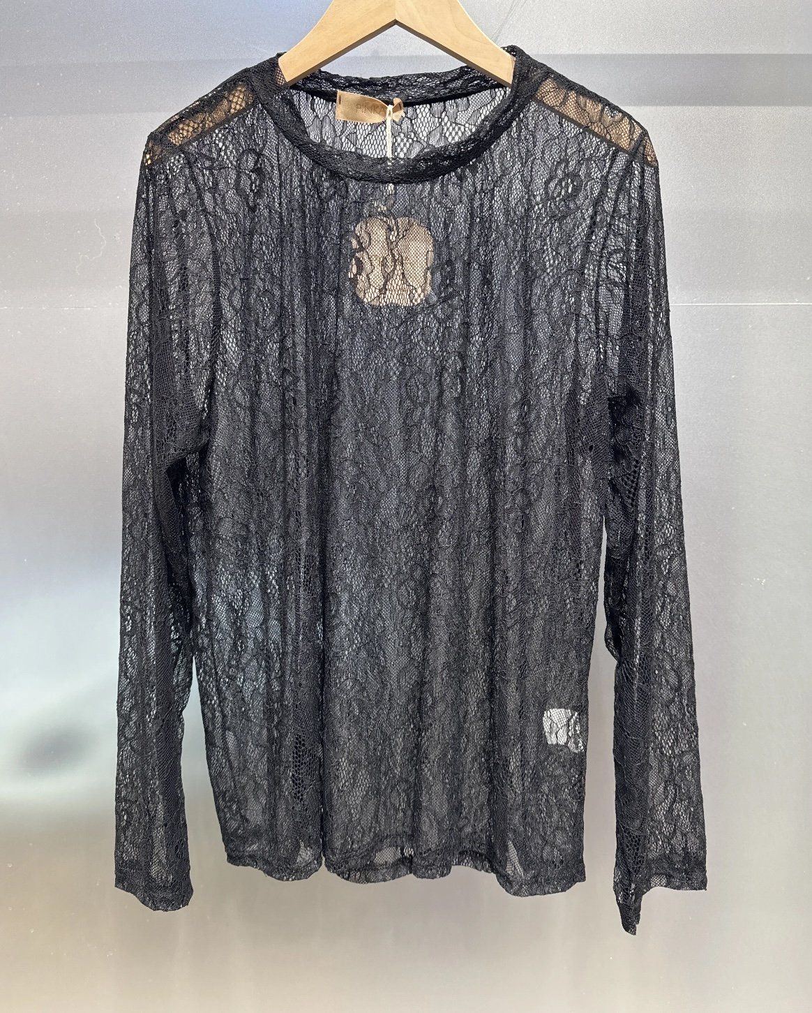 T-shirt manches longues en dentelle , col arrondi , taille unique du 36 au 42