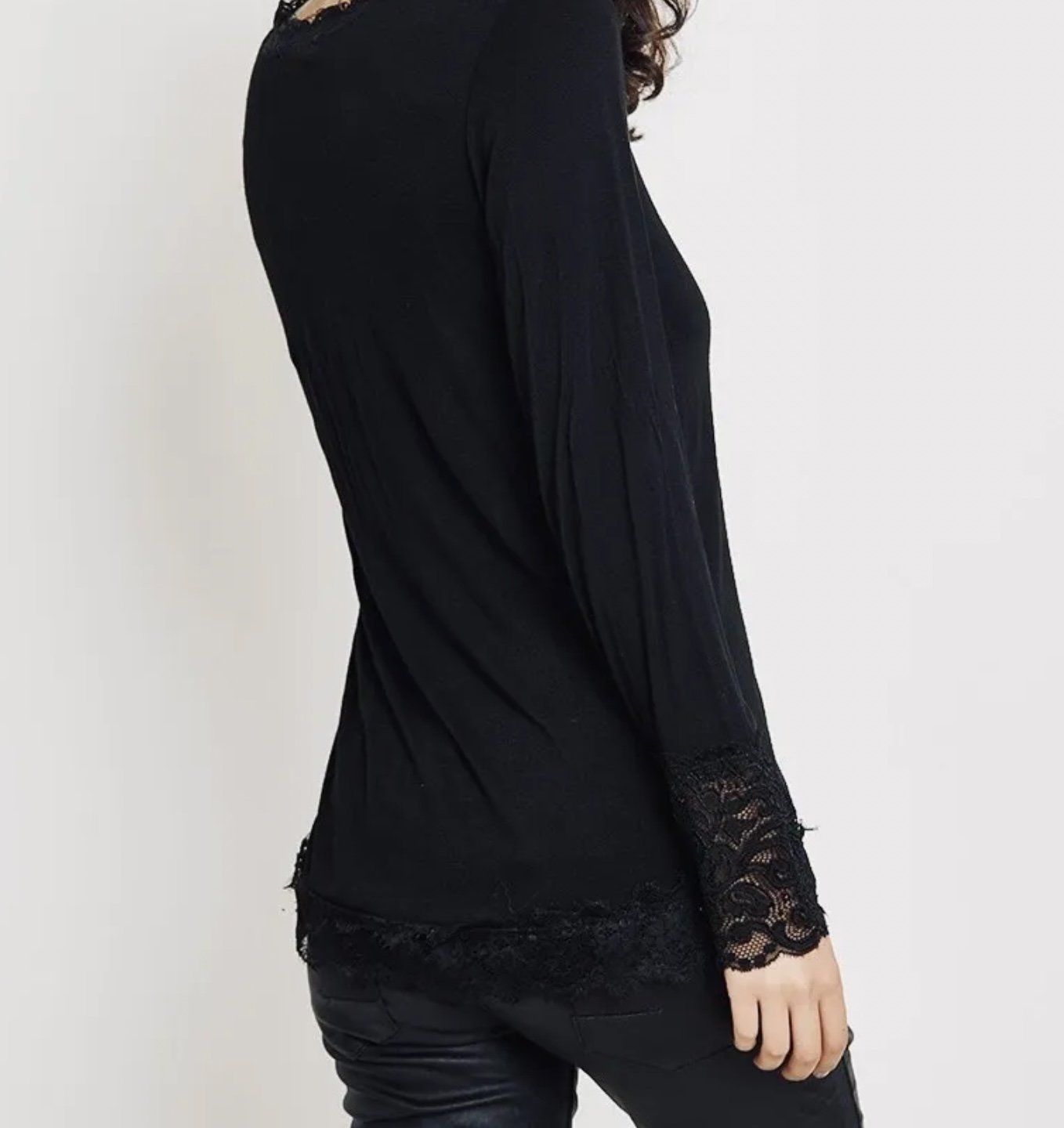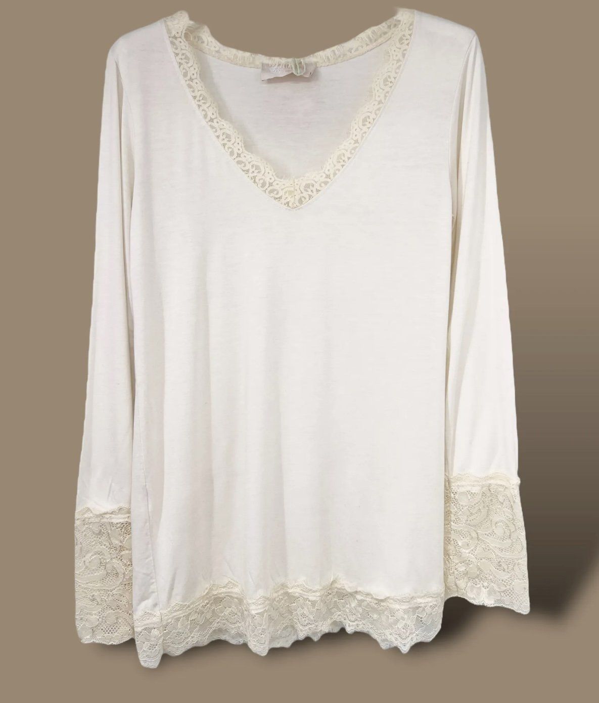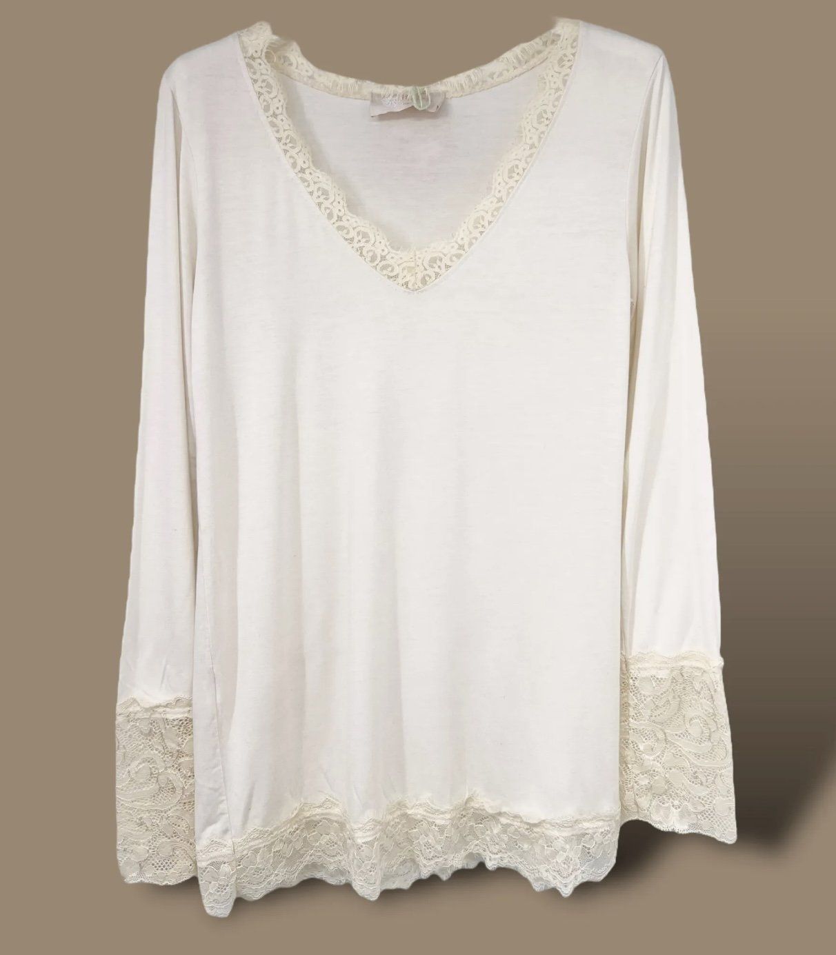 Top avec dentelle au col et aux manches , extensible, convient du 36 au 44