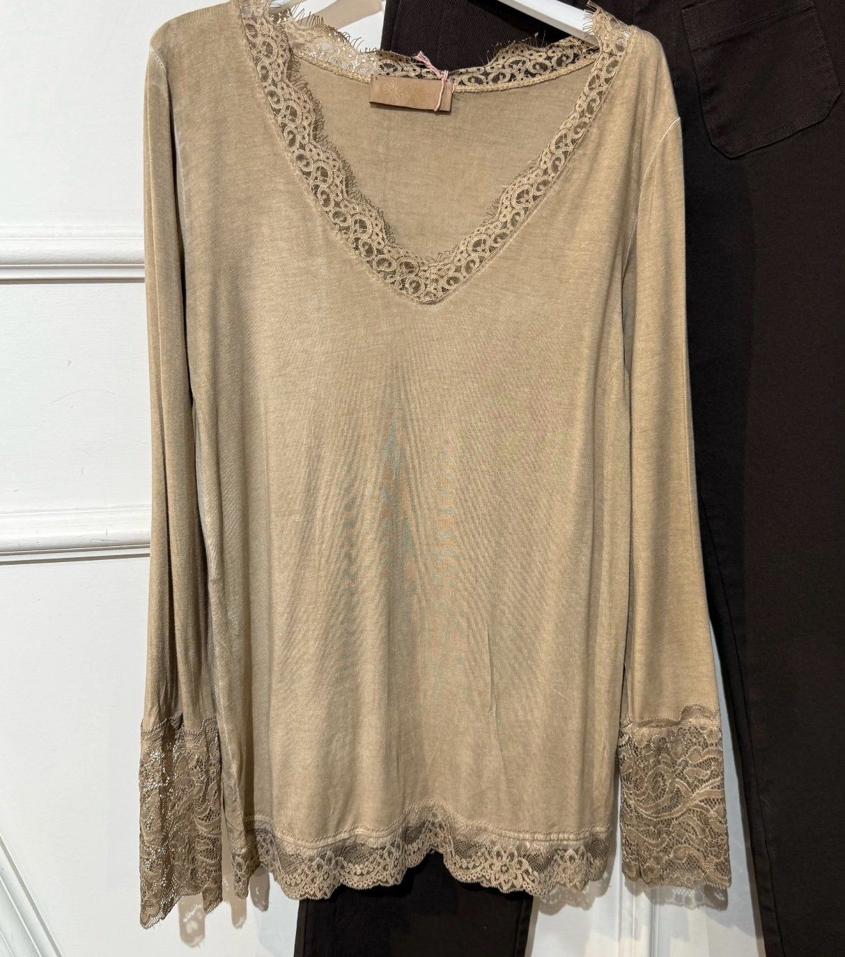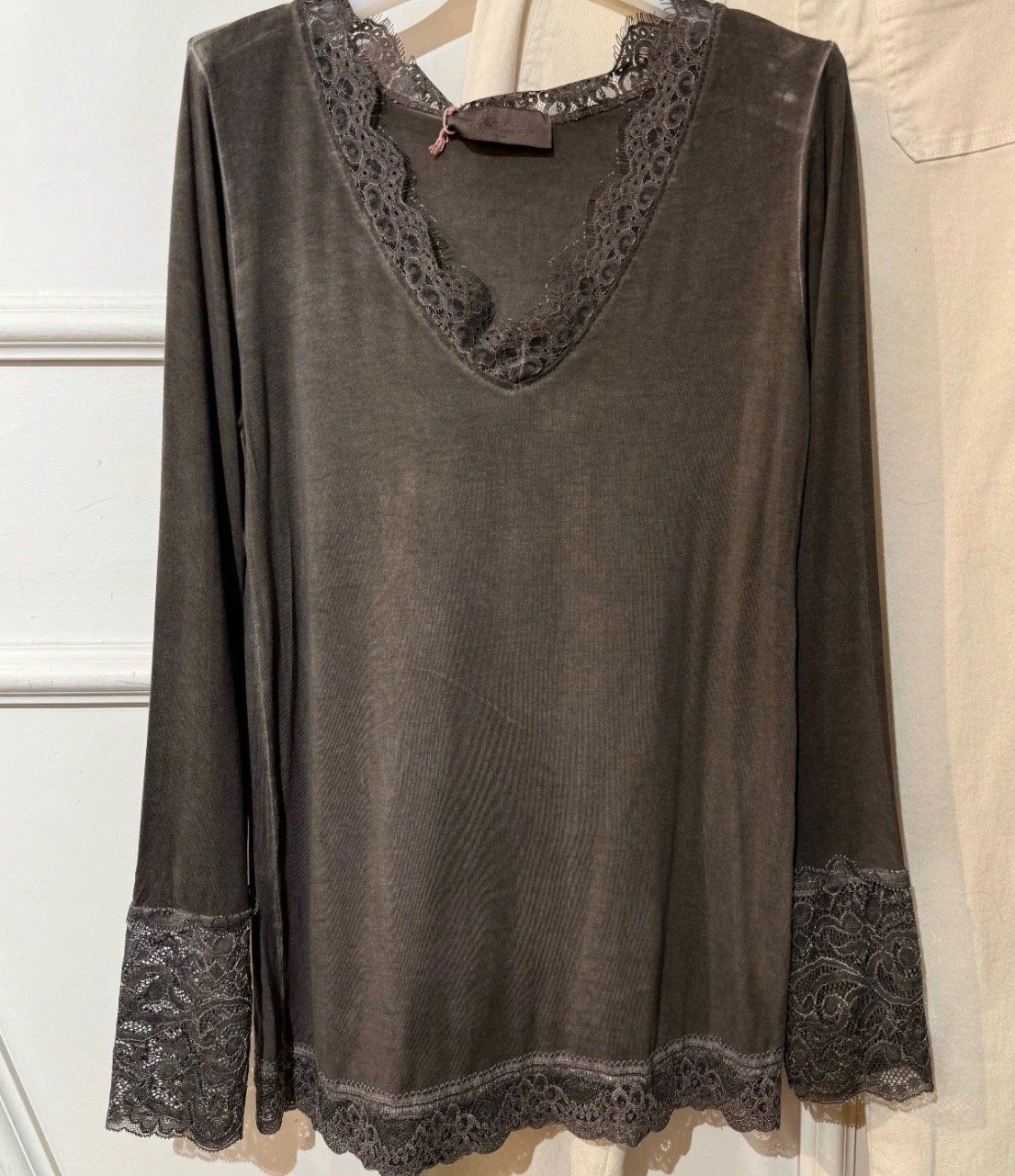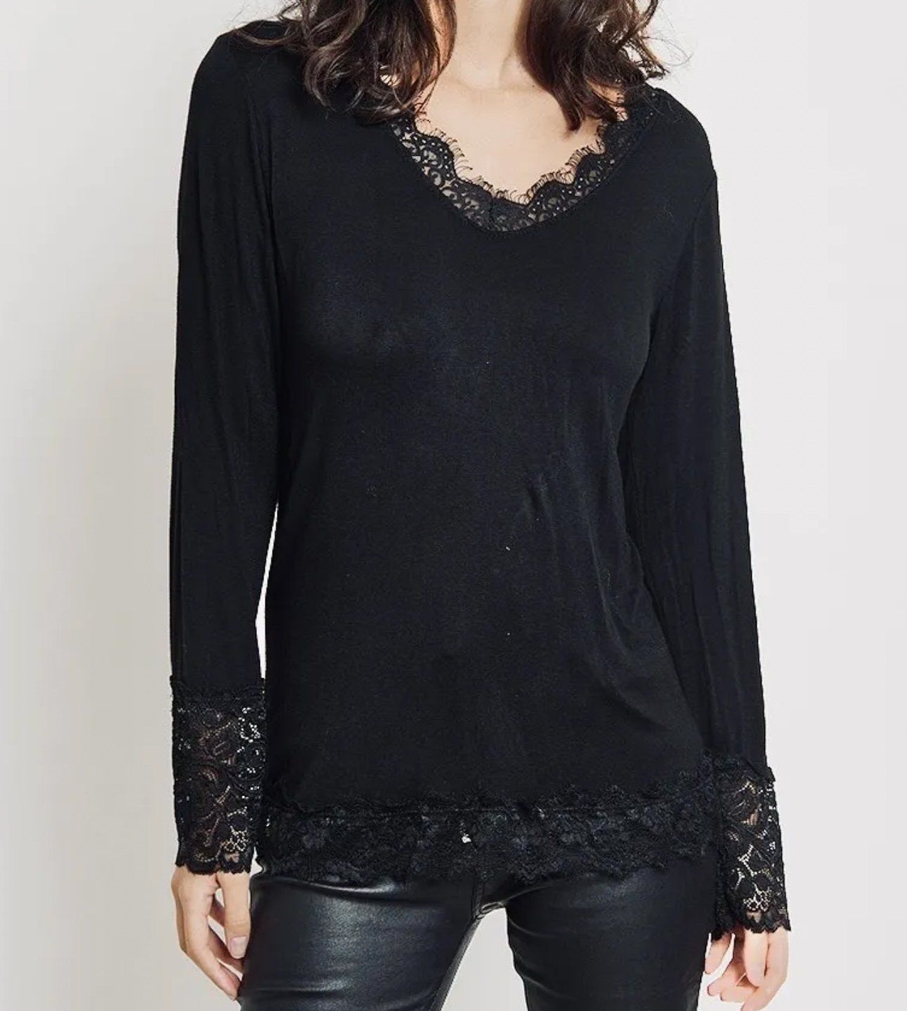 Top avec dentelle au col et aux manches , extensible, convient du 36 au 44