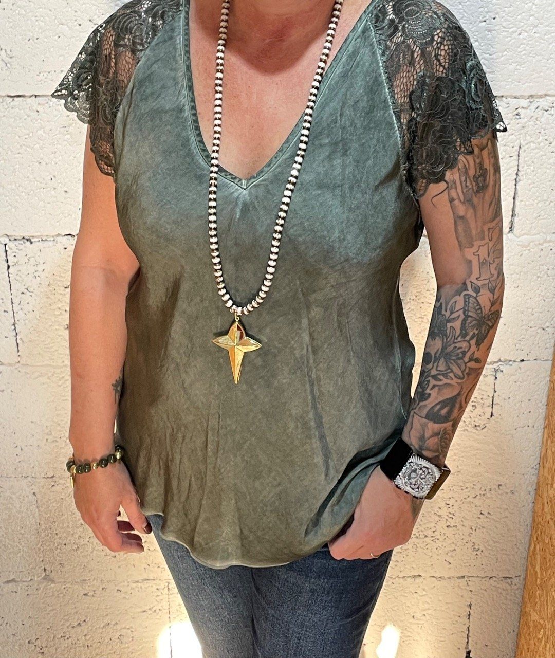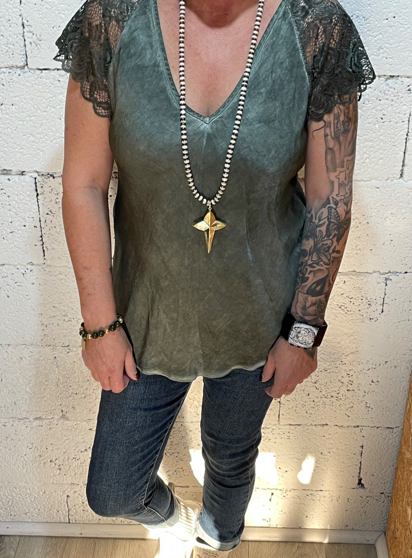Top viscose avec dentelle sur les épaules , Taille unique du 36 au 42