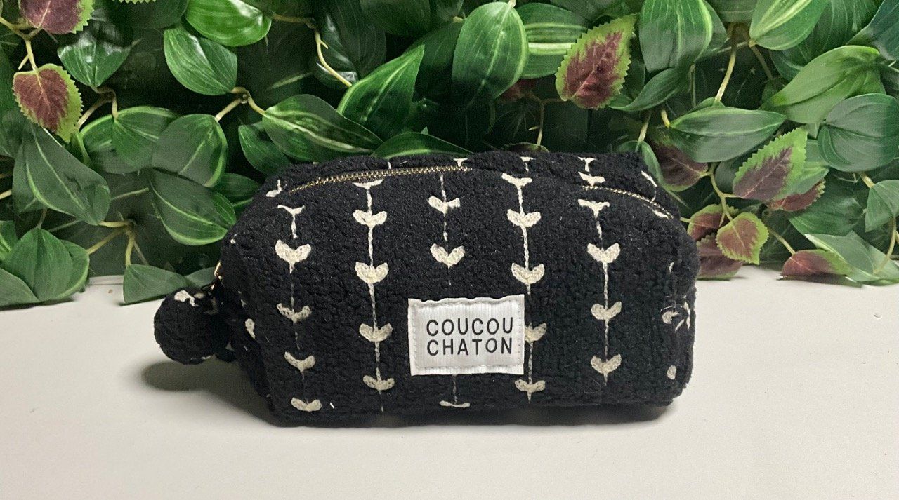 Trousse de toilette en fausse fourrure avec lettre coucou chaton .