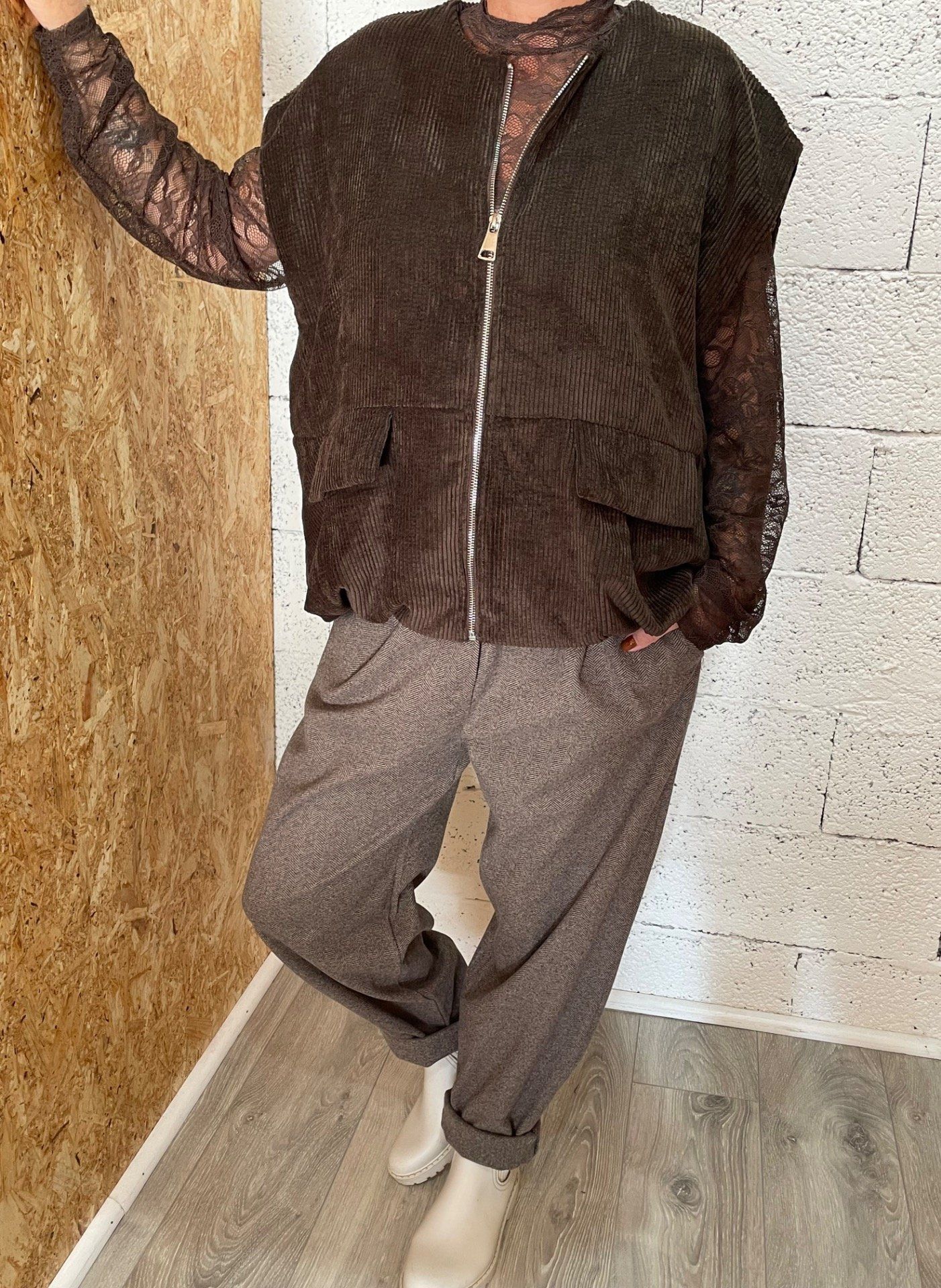 Veste en velours côtelé sans manches ,fermeture zippée ,